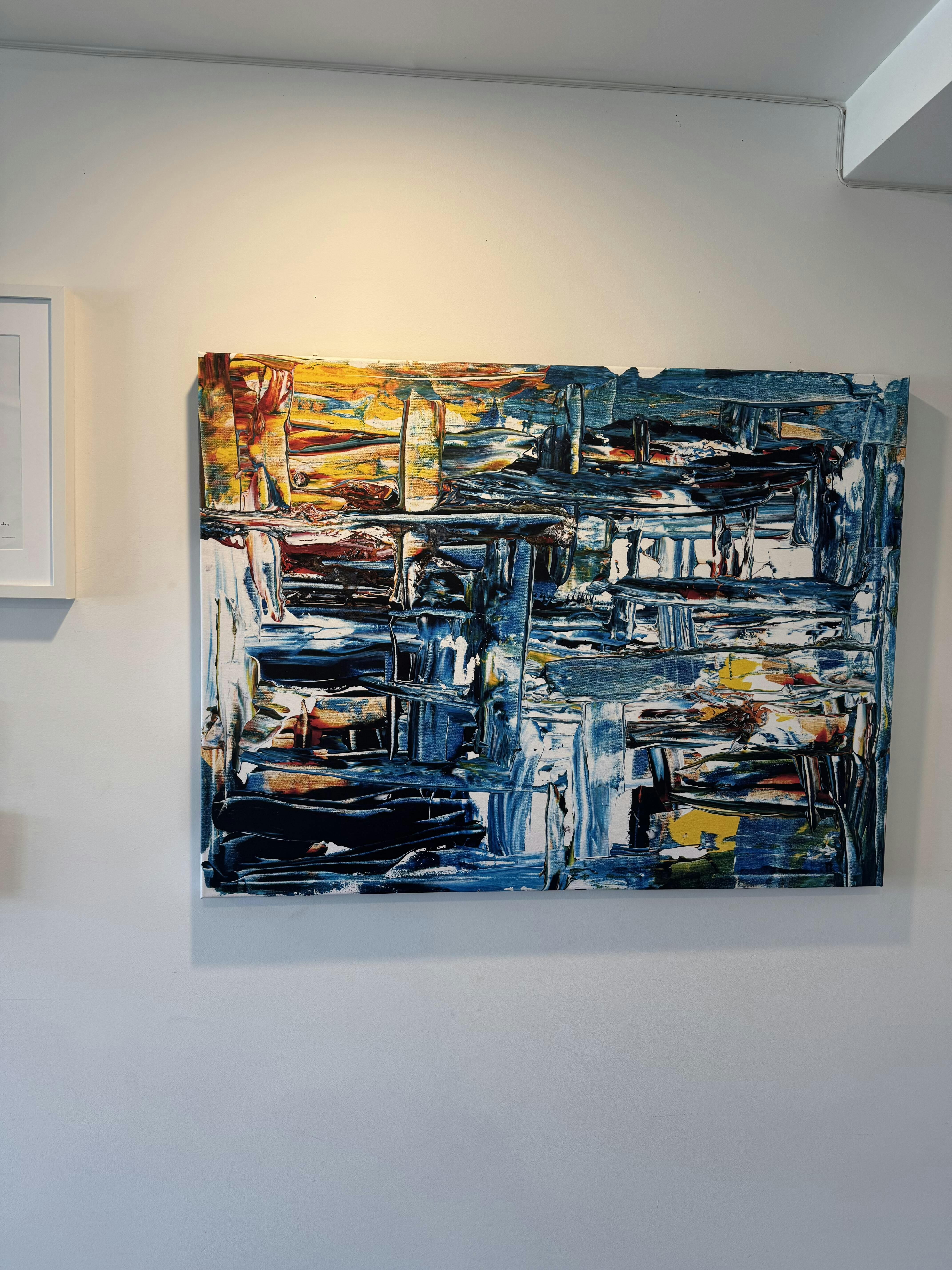 This piece captures the raw energy and emotion of creativity itself. Every stroke feels alive, bold, textured, and full of movement. The mix of blues, yellows, and earthy tones draws you in, almost like you’re stepping inside the artist’s thoughts.
