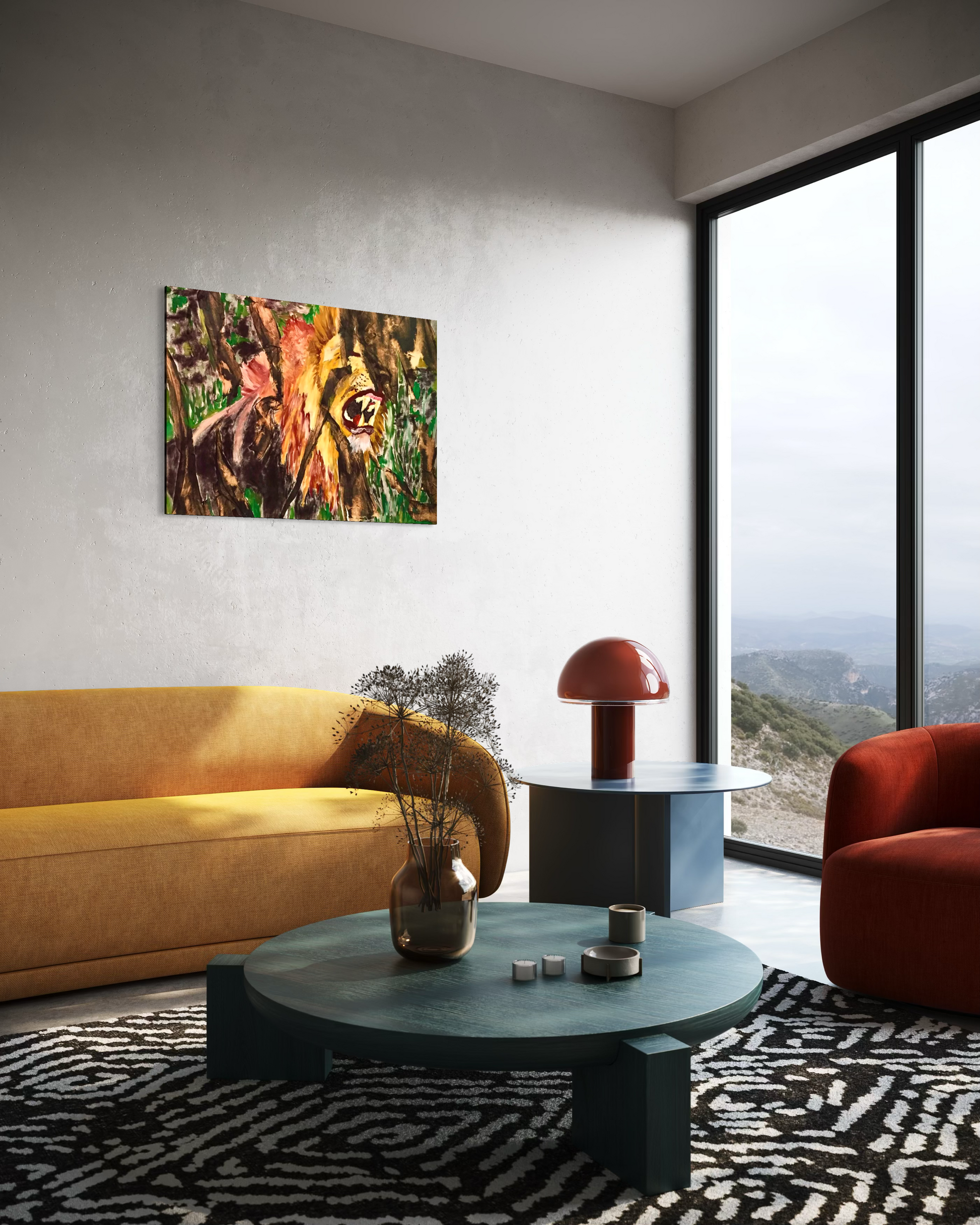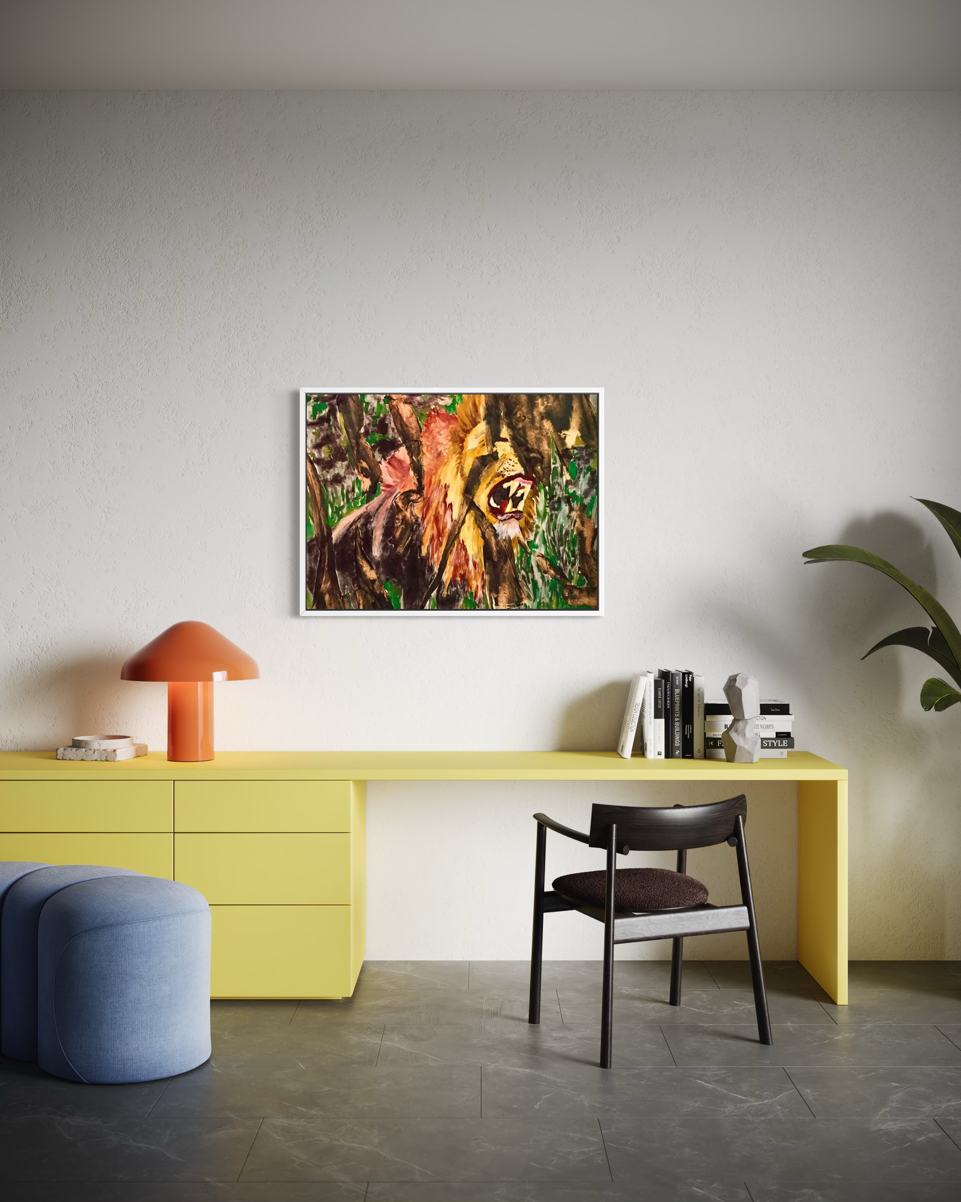 Built through layered materials and forceful mark-making, the lion is not presented as spectacle, but as presence. The roar is not decorative, it is directional.